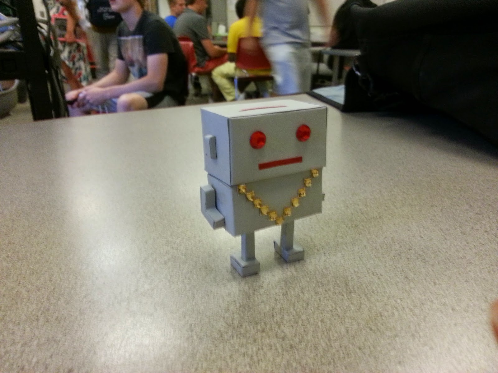 One of the first users of rur-ple is a high school teacher in New Jersey who gave me some great feedback while I was developing the program. He reall seems to have found a way to make students enjoy learning. A while ago, he sent me this picture of one of his students who decided to make a Reeborg costume for Hallowe'en.