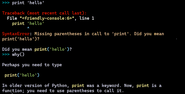 There has been a few other similar improvements in the latest release ... but this one example should suffice to illustrate the work done to make Python even friendlier to beginners. However, this is unfortunately not the whole story.